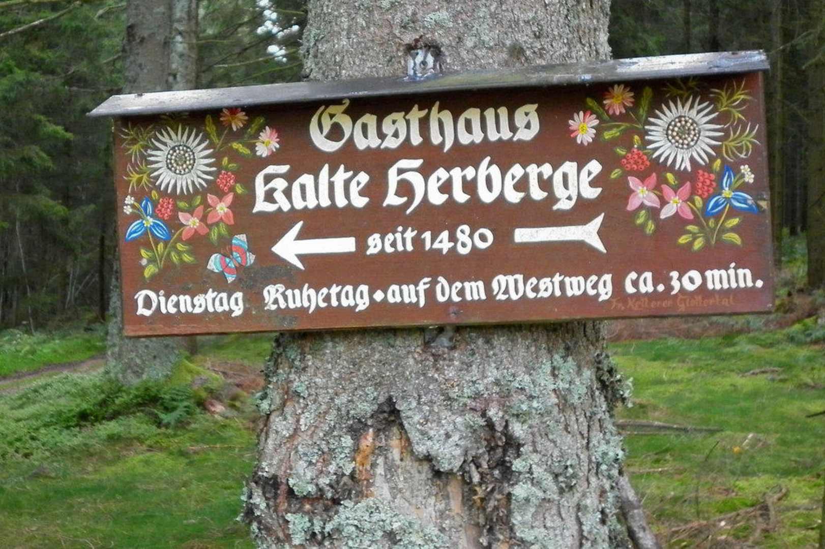 Wegweiser zum Gasthaus "Kalte Herberge"Origineller Wegweiser