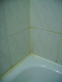 Unrenovierte Dusche im Doppelzimmer