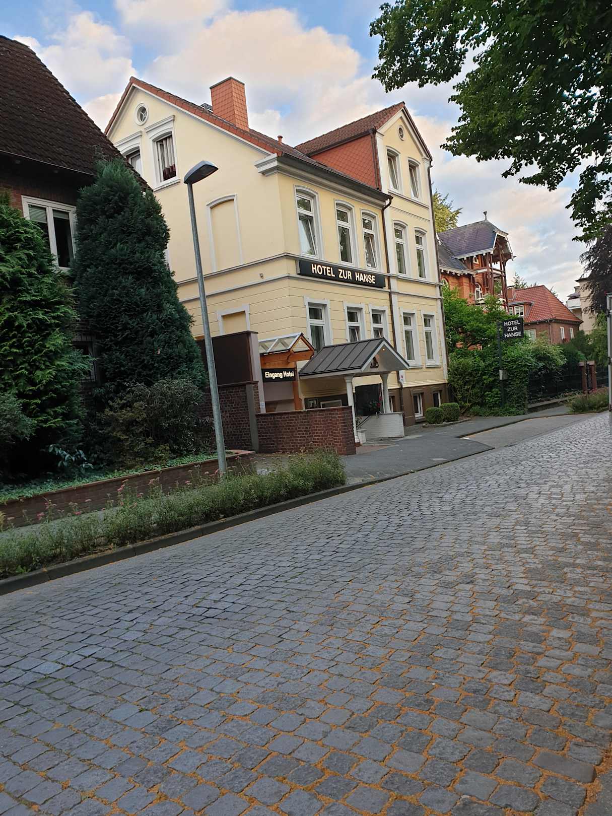 Von der Straße die Sicht auf das Hotel