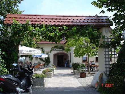 Eingang und Teil des Biergartens vom Hotel