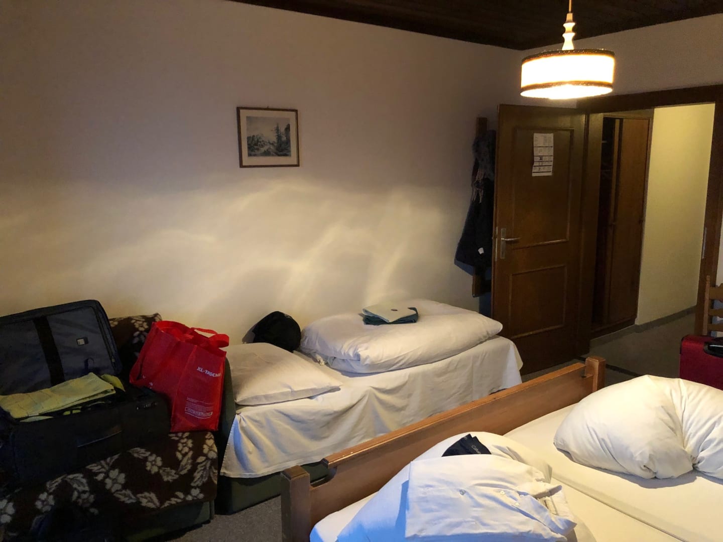 Standardzimmer. Sehr alt, sehr abgewohnt. Die Fotos auf der Bäckerwirt-Homepage vermitteln einen wesentlich(!) schöneren Eindruck, den wir nicht bestätigen können. Alleine, die Couch, die Decke darauf, die lichtschwache Lampe...