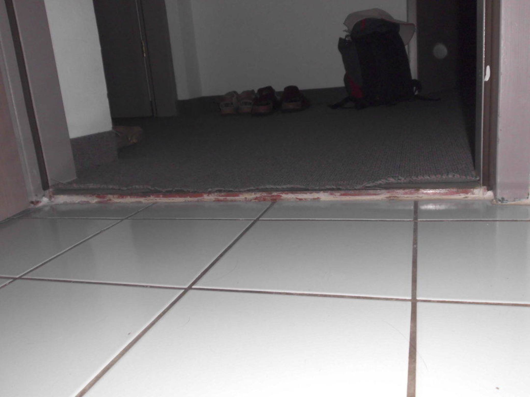Übergang zwischen Bad und FlurAm Übergang zwischen Bad und Flur, also zwischen Fliesen und Teppichboden hinderte nichts den Teppichboden zu halten und auszufransen. (Sind da keine Leisen üblich?)