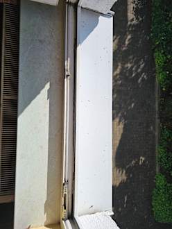 Das Fenster sowie die Fahnen wurden seit Jahren nicht mehr geputzt