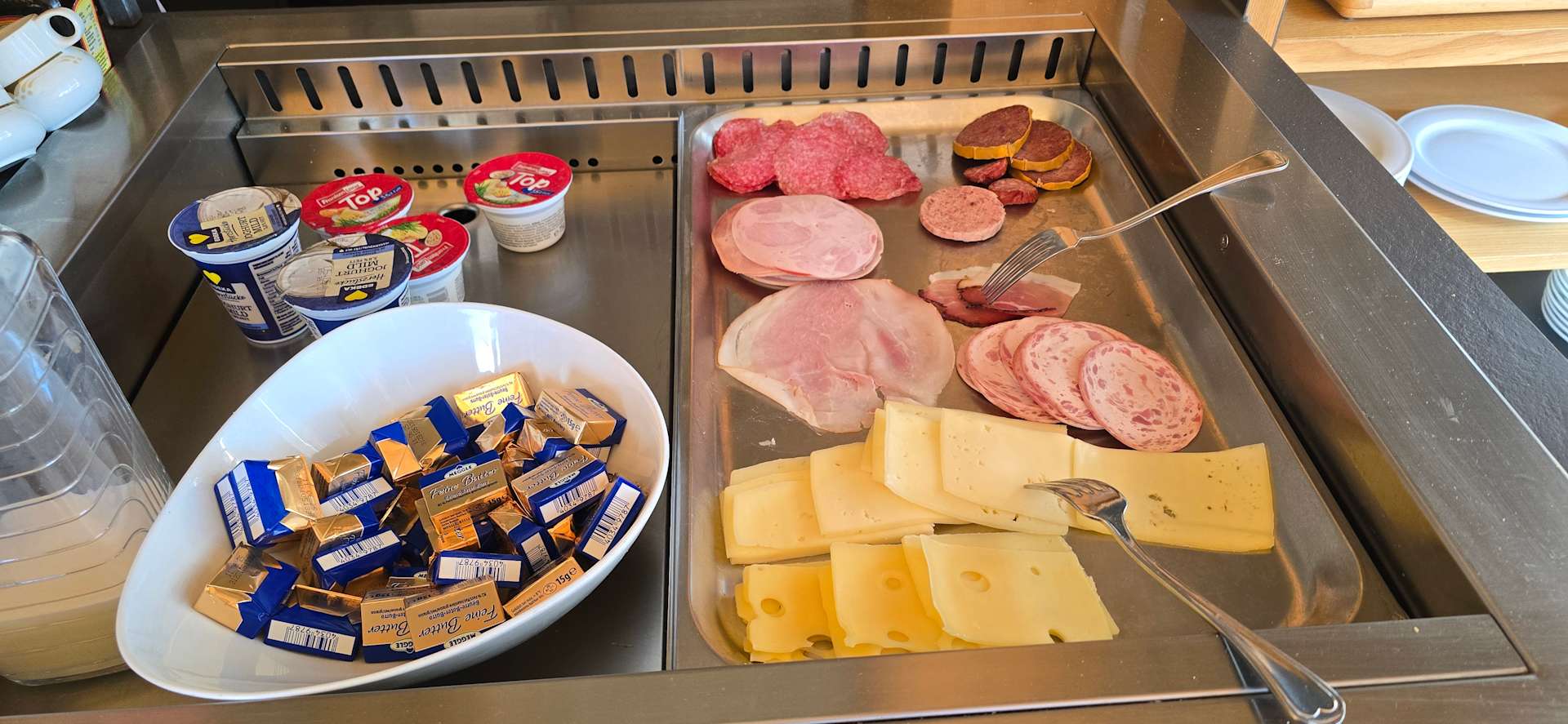 Frühstücksbuffet mit getrockneter Wurst und Käse...