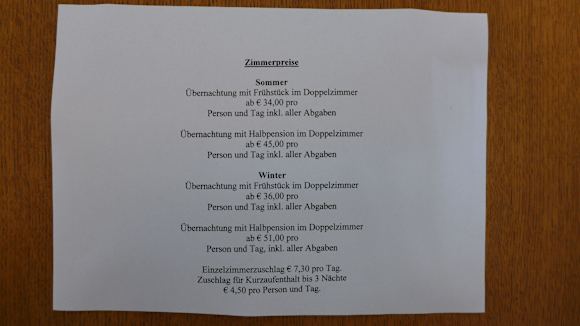 Gasthof Rose, 2 Zimmerpreise 2014