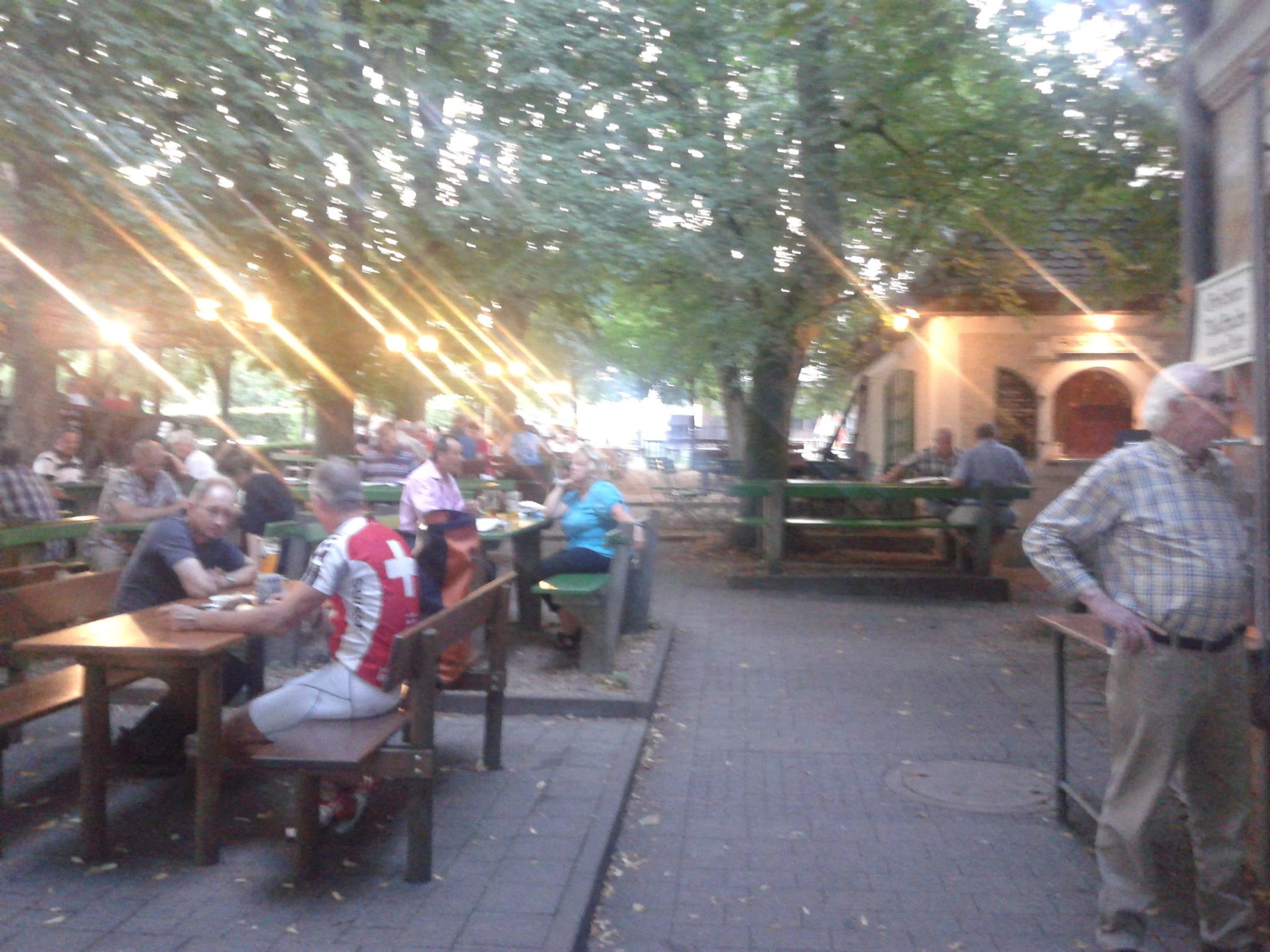 Biergarten im Abendlicht