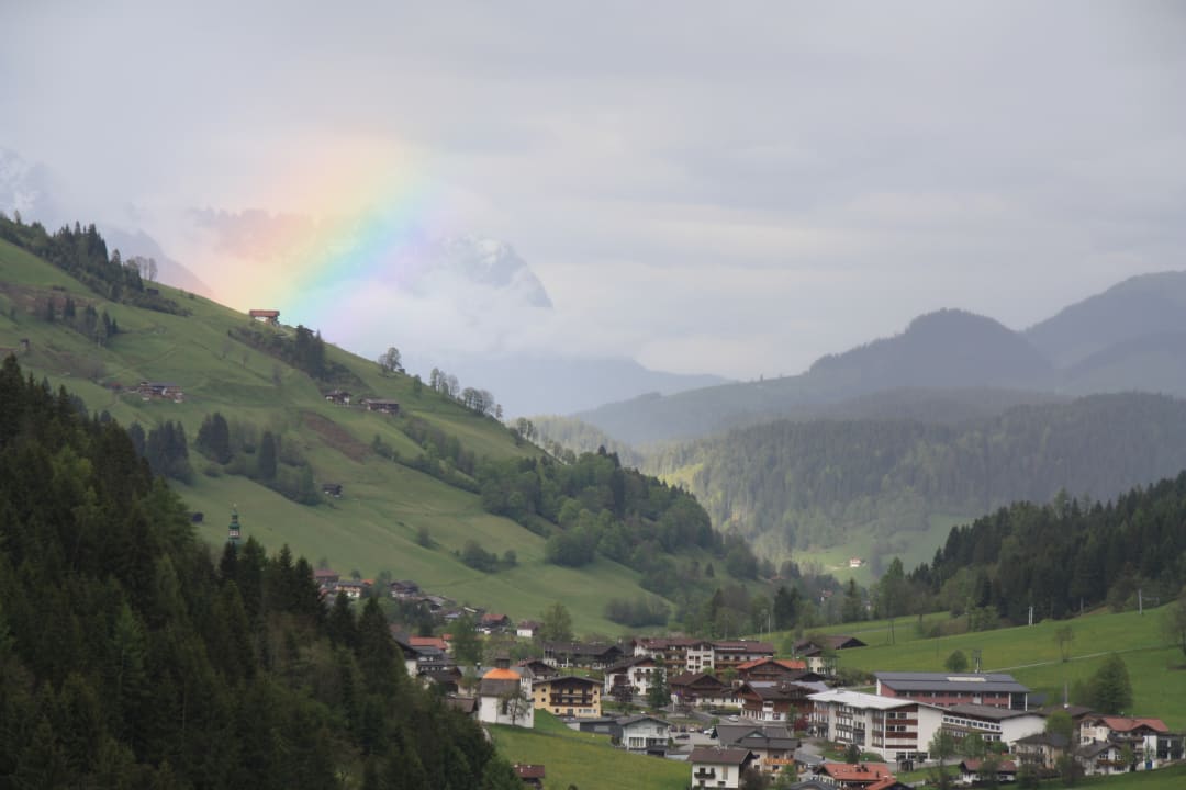 Blick vom Zimmer übers Tal zum Wilden Kaiser