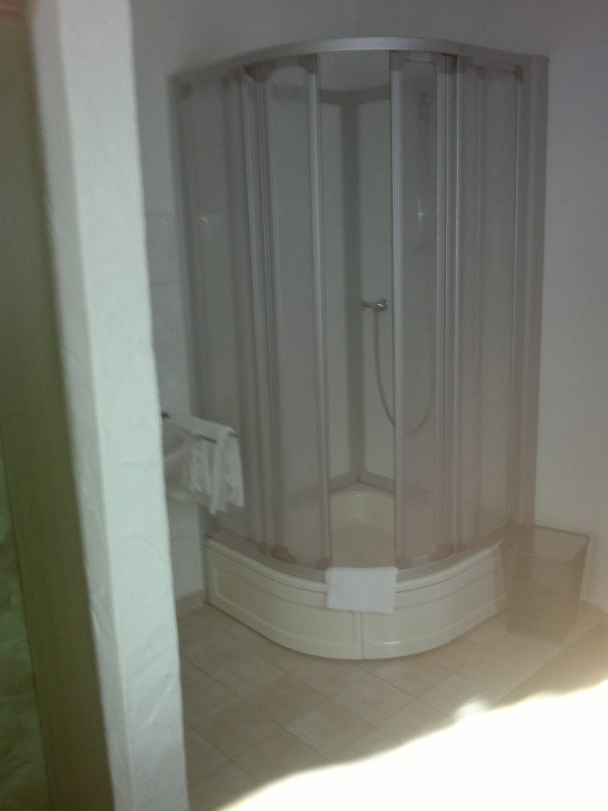 Dusche mit im ZimmerDie Dusche ist mit im Zimmer,wäre nicht so schlimm, wenn noch eine Heizung im Raum wäre,aber leider im Winter viel zu kalt