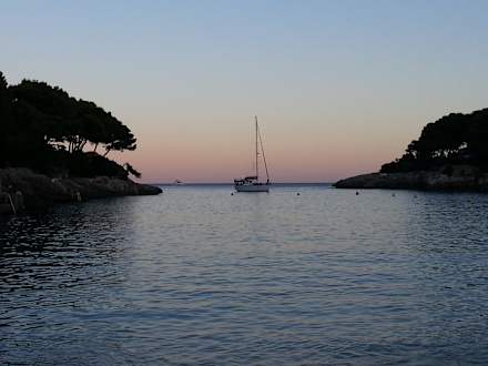 Die Bucht Cala Gran am Abend