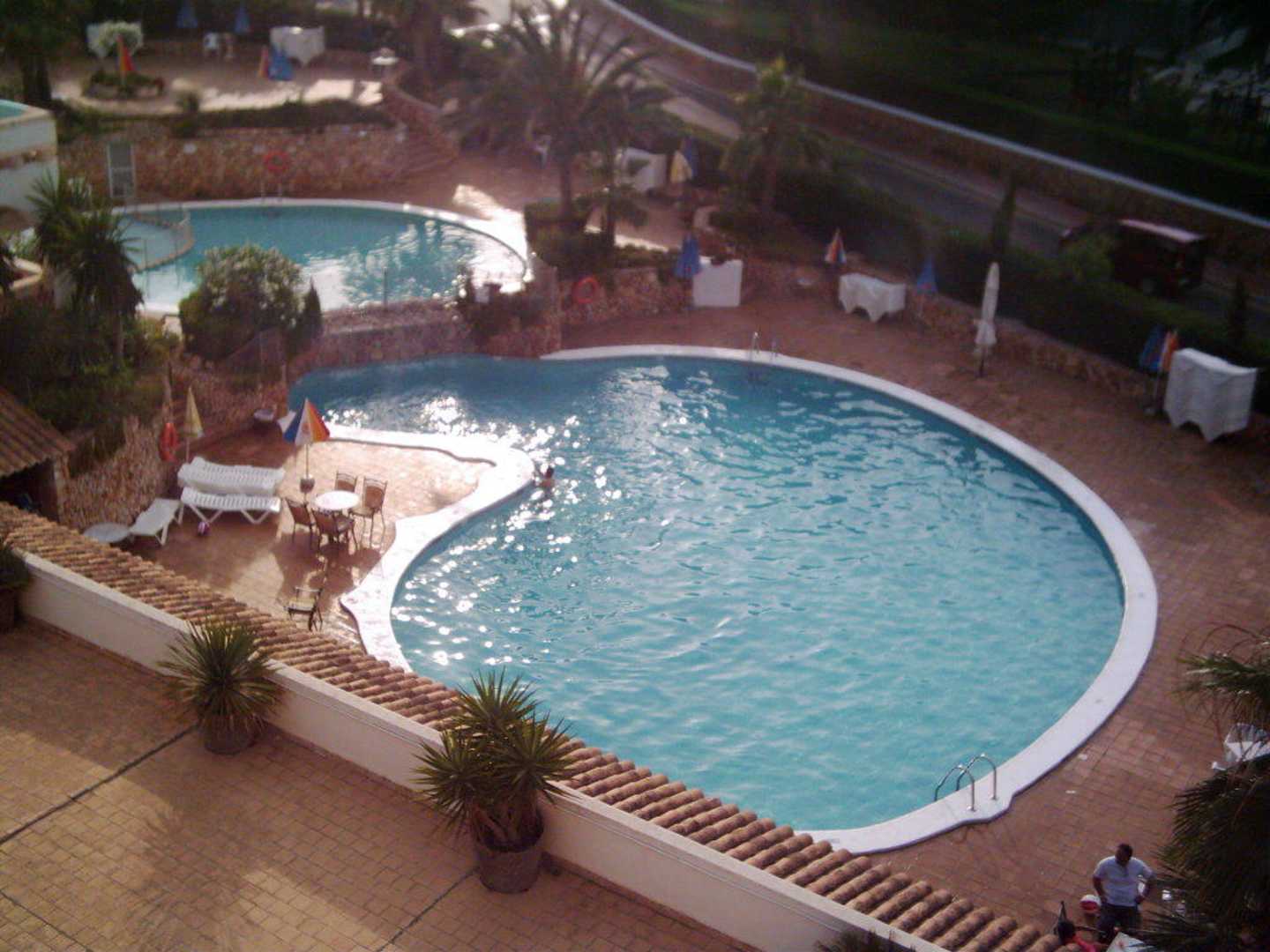 Der Pool vom Hotelzimmer aus, auch hier werden ab 8:00h die Liegen reserviert