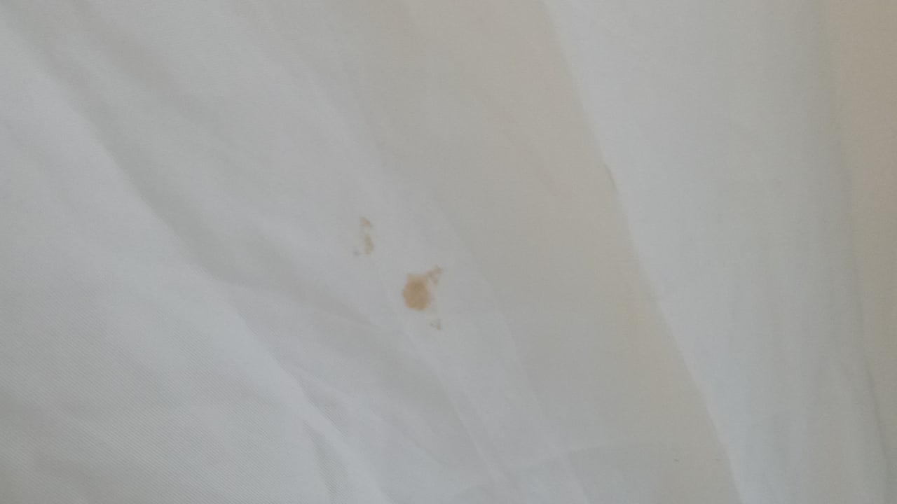 Blutspritzer eingetrocknet am Badevorhang
