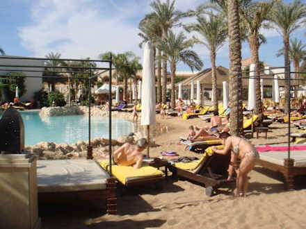 Künstlicher Strand am Poolbereich im Hotel
