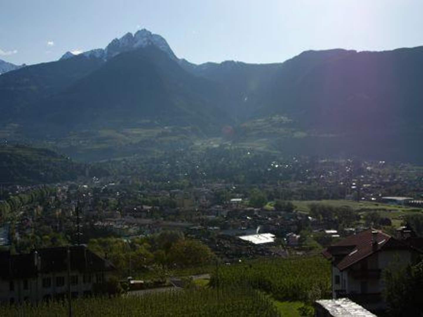 Aussicht vom Doppelzimmer Deluxe über Meran am Tag