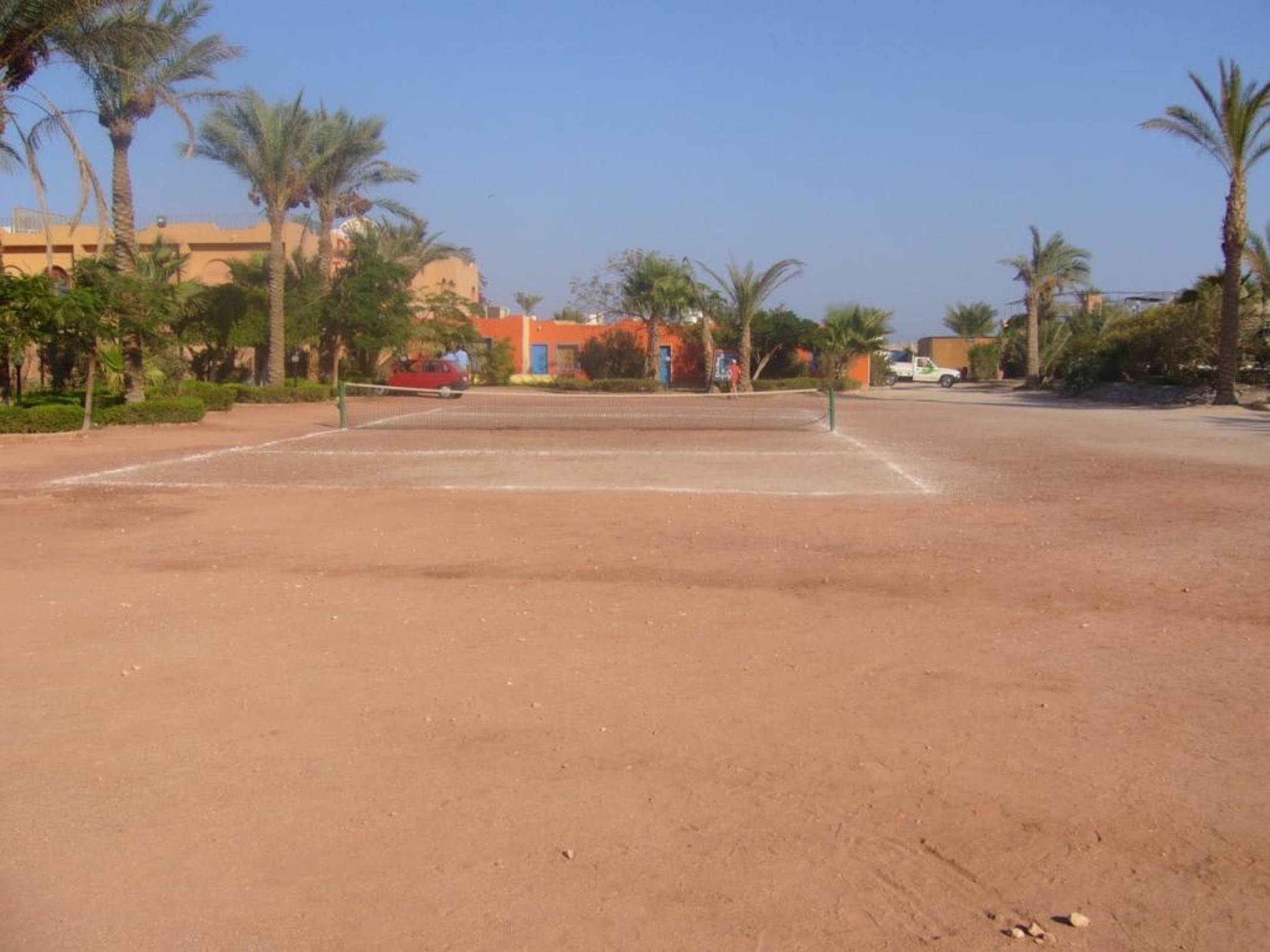 Am Tennisplatz rechts vorbei geht es zum Pool oder zum Strand.