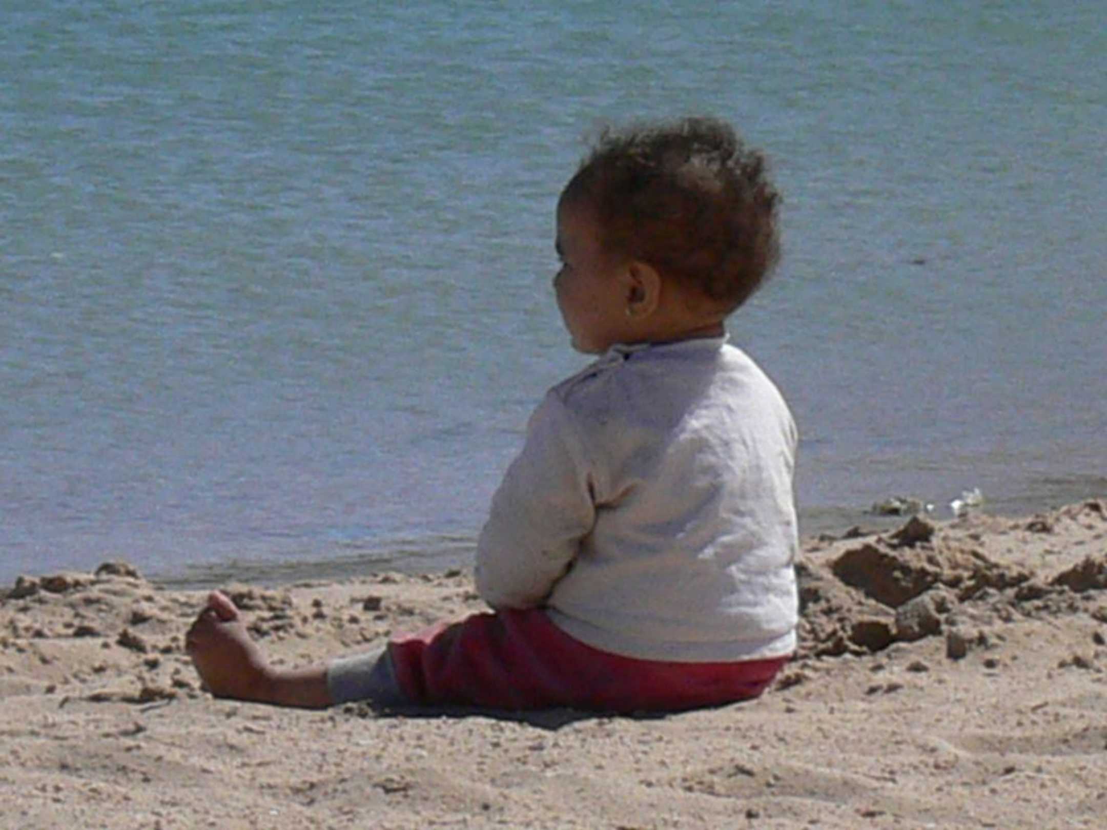 Kleiner Ägypter am Strand zwischen den Hotels Siva Grand Beach und Giftun Beach. Geduldig wartet er auf die Rückkehr seiner Geschwister vom Schwimmen.