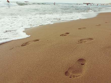 Unsere Spuren im feinen Sand des Hotelstrandes