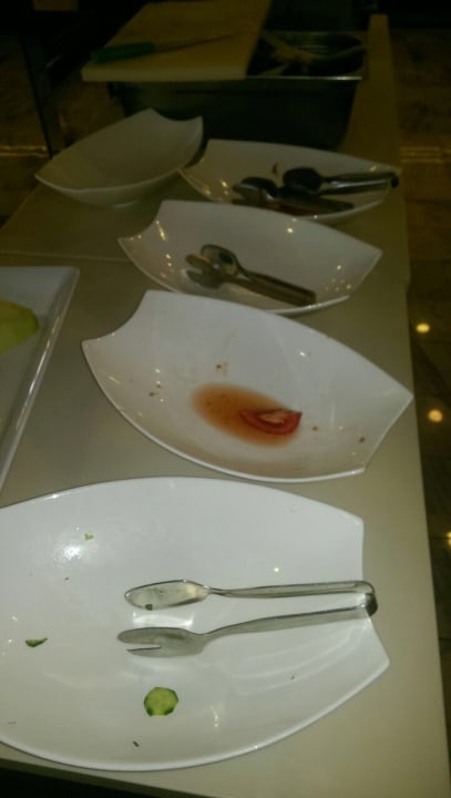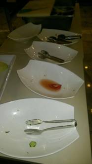 am Morgen stehen leere Teller am Buffet