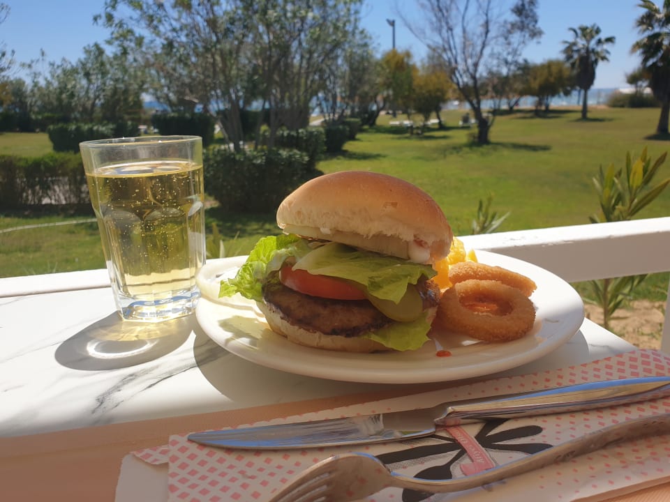 Burgertime an der Strand Snack-Bar mit Blick aufs Meer