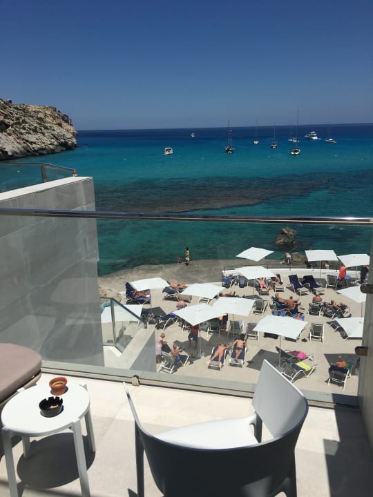 Balkon mit Blick auf die Sonnenterasse und das Meer