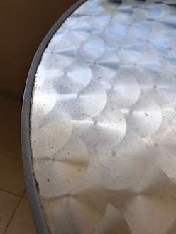 Versiffter Tisch auf dem Balkon