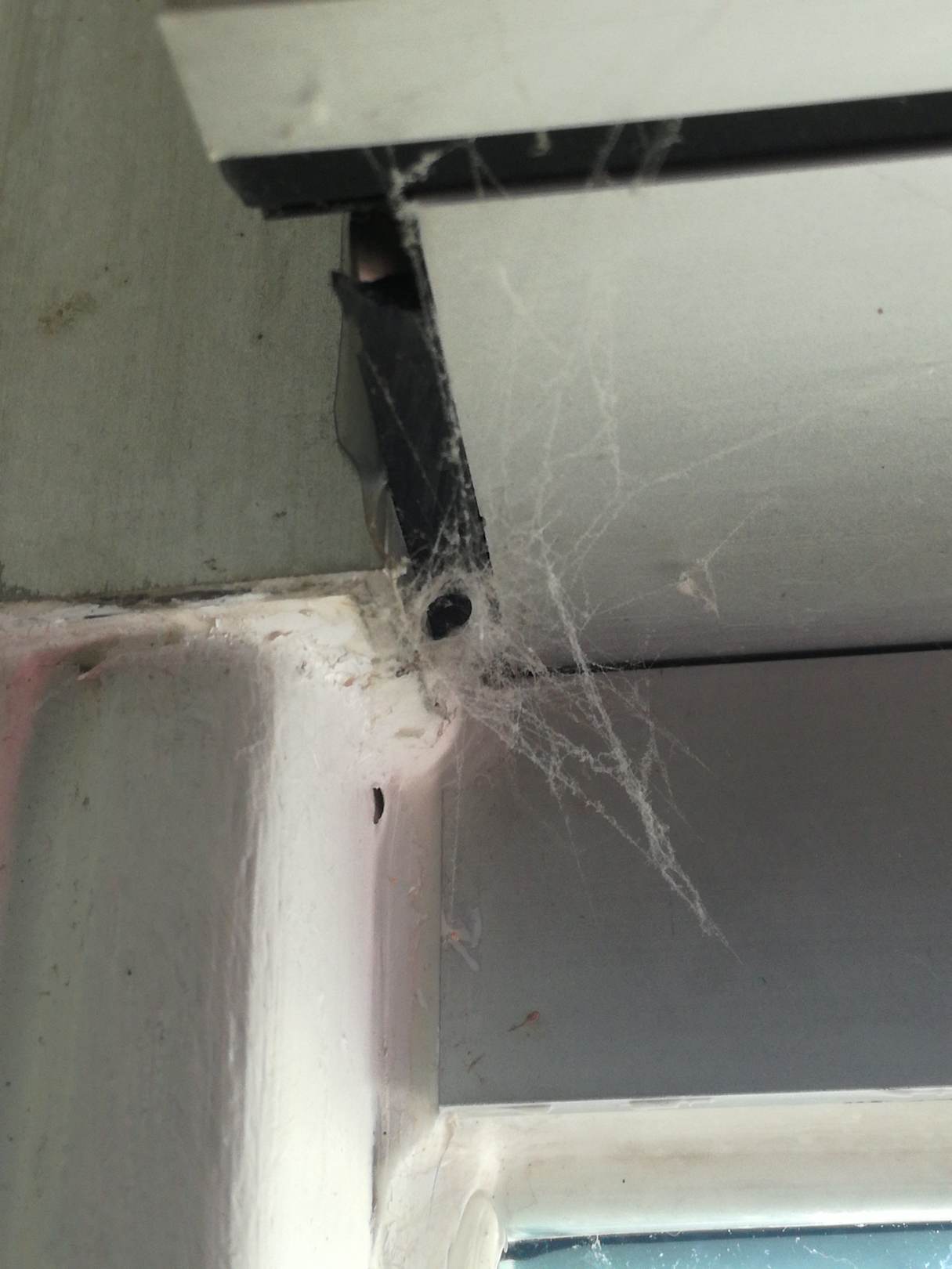 ZimmerHier hat sich im Gehäuse der Lüftungsschlitze im Fernsterrahmen eine Spinne eingenistet, so wie es aussieht nicht erst seit gestern...