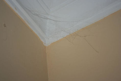 Spinnweben über dem Bett