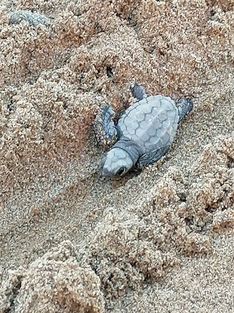 Gerade geschlüpfte Meeresschildkröte auf dem Weg ins Wasser