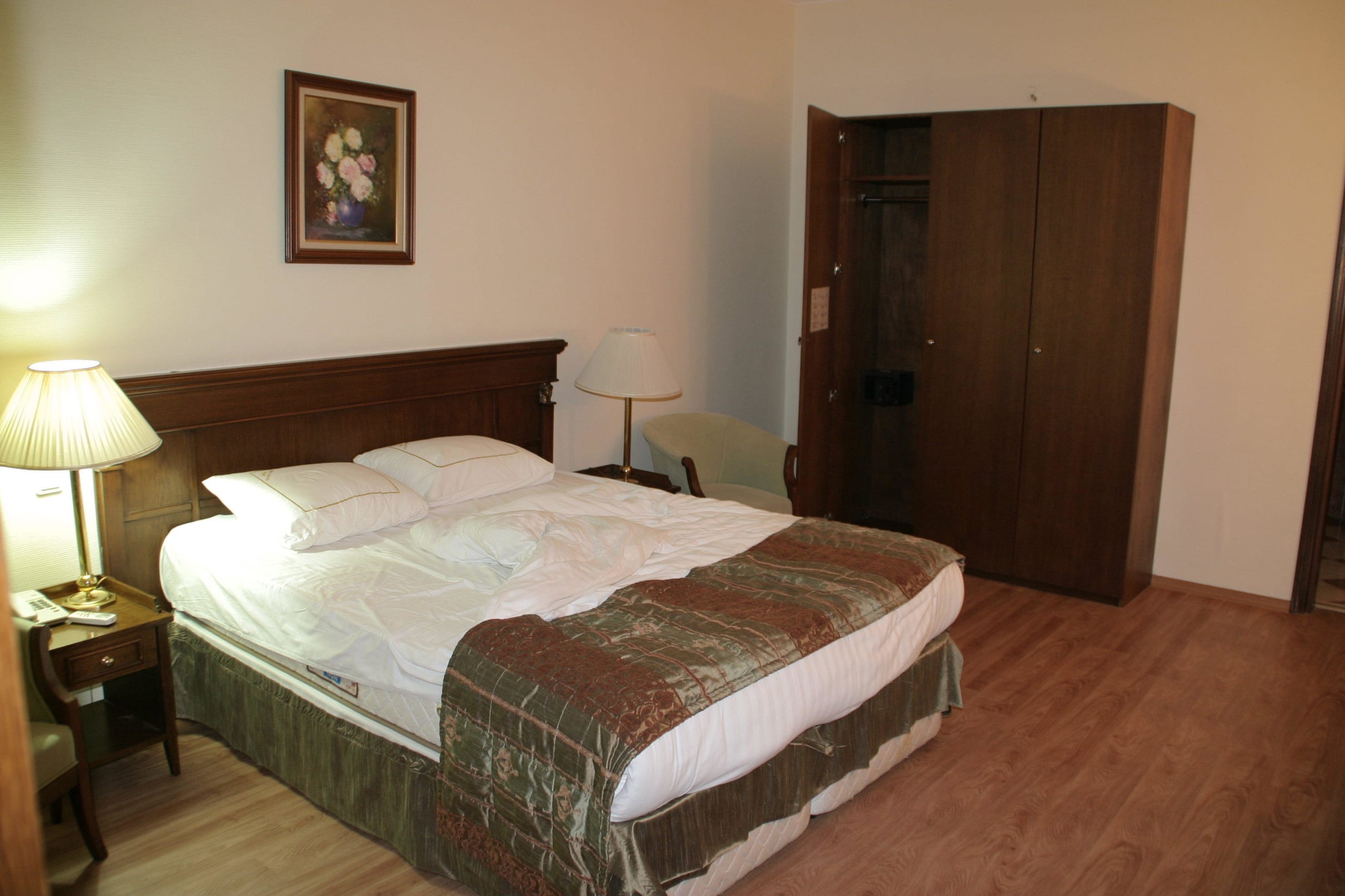 Suite, großes SchlafzimmerVon dort führt eine Glastür in das vordere Schlafzimmer, das zum Flur führt.