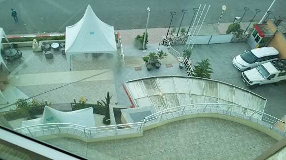 Ausblick vom Balkon auf den Eingangsbereich