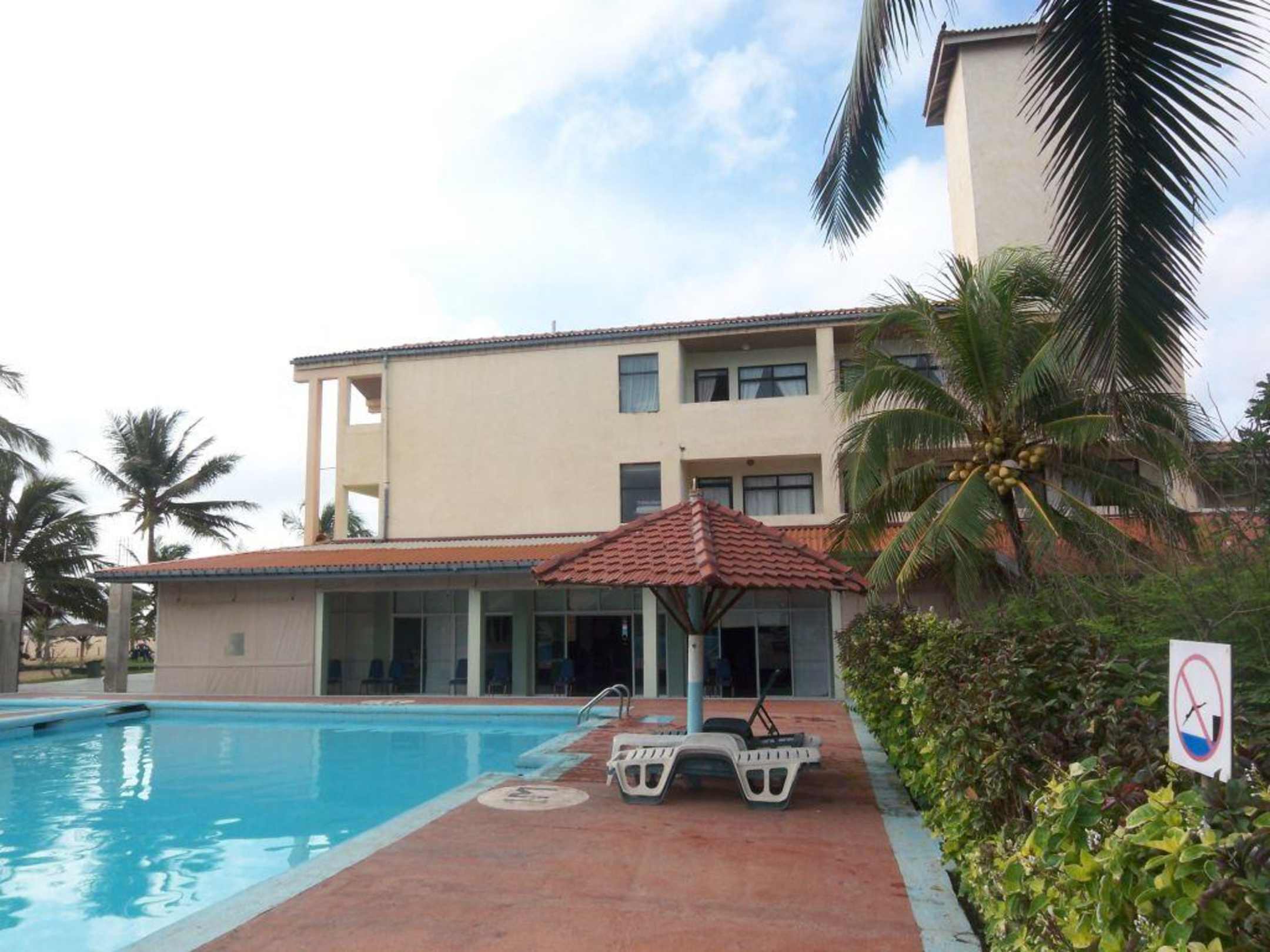 Pool und Hotel von der Seite Goldi Sands Hotel