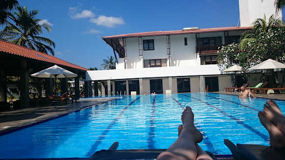 Der Blick vom Pool Richtung Hotel
