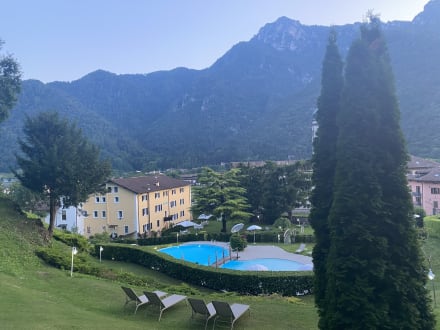 Wunderschöner Ausblick auf das Hotelgelände am Abend