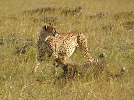 Ein Gepard mit seinem Jungen