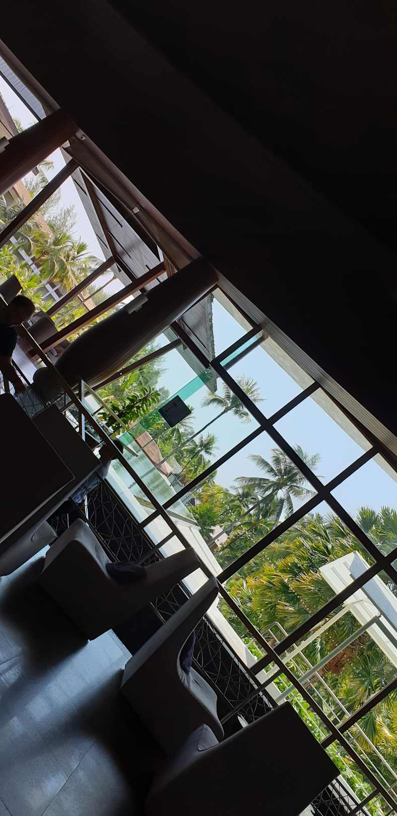 Blick von der großarteigen Lobby Richtung Hotelanlage.