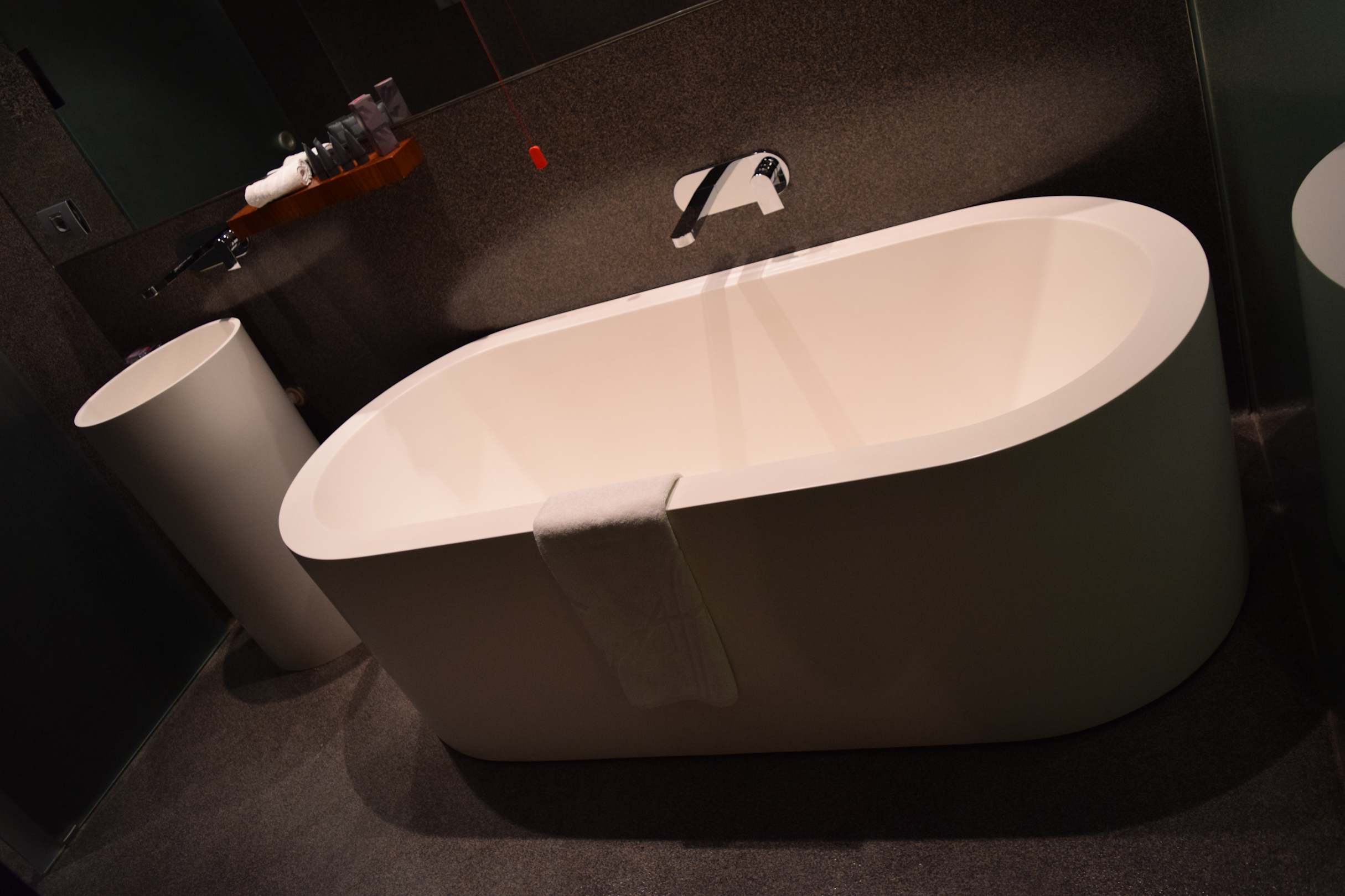 Badezimmer mit freistehender Wanne