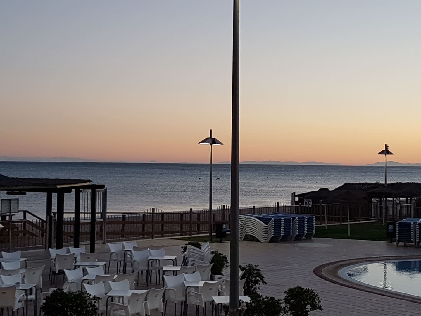 Blick von dem Balkon über den Poolbereich nach Afrika