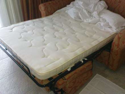 Wie man sehen kann diente das Schlafsofa zeitgleich auch als Startrampe, durch die man das komplette Lattenrost spürte. Seit zwei Tagen sind wir daheim - mein Rücken sagt jetzt noch danke!