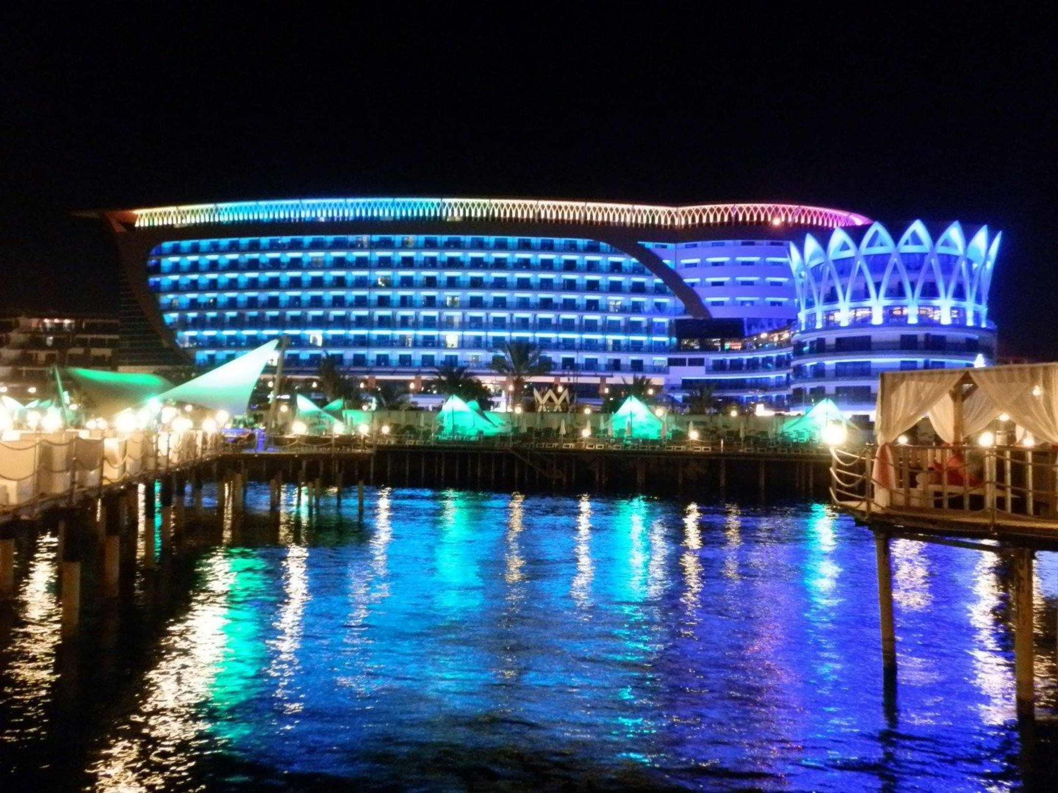 Hotel bei Nacht vom Steg aus