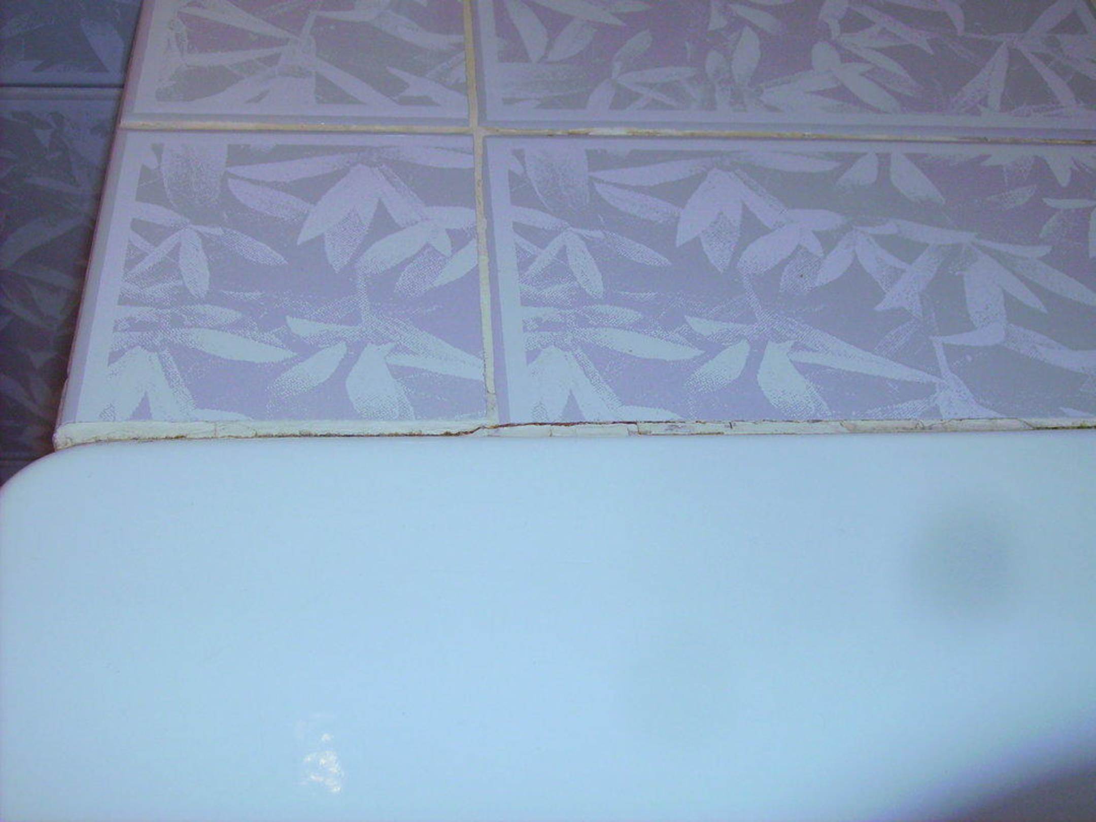 Auf dem Bild erkennt man die altersbedingten Risse in der Fuge am Badewannenrand