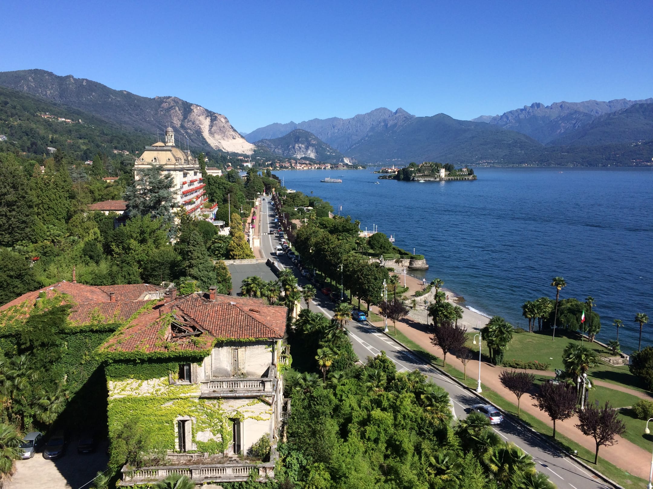Blick auf die Isola Bella und Strandpromenade in Stresa