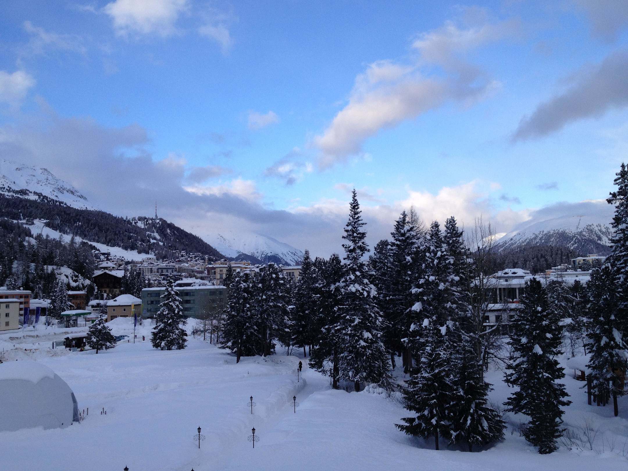 Blick vom 3. Stock auf St. Moritz Dorf