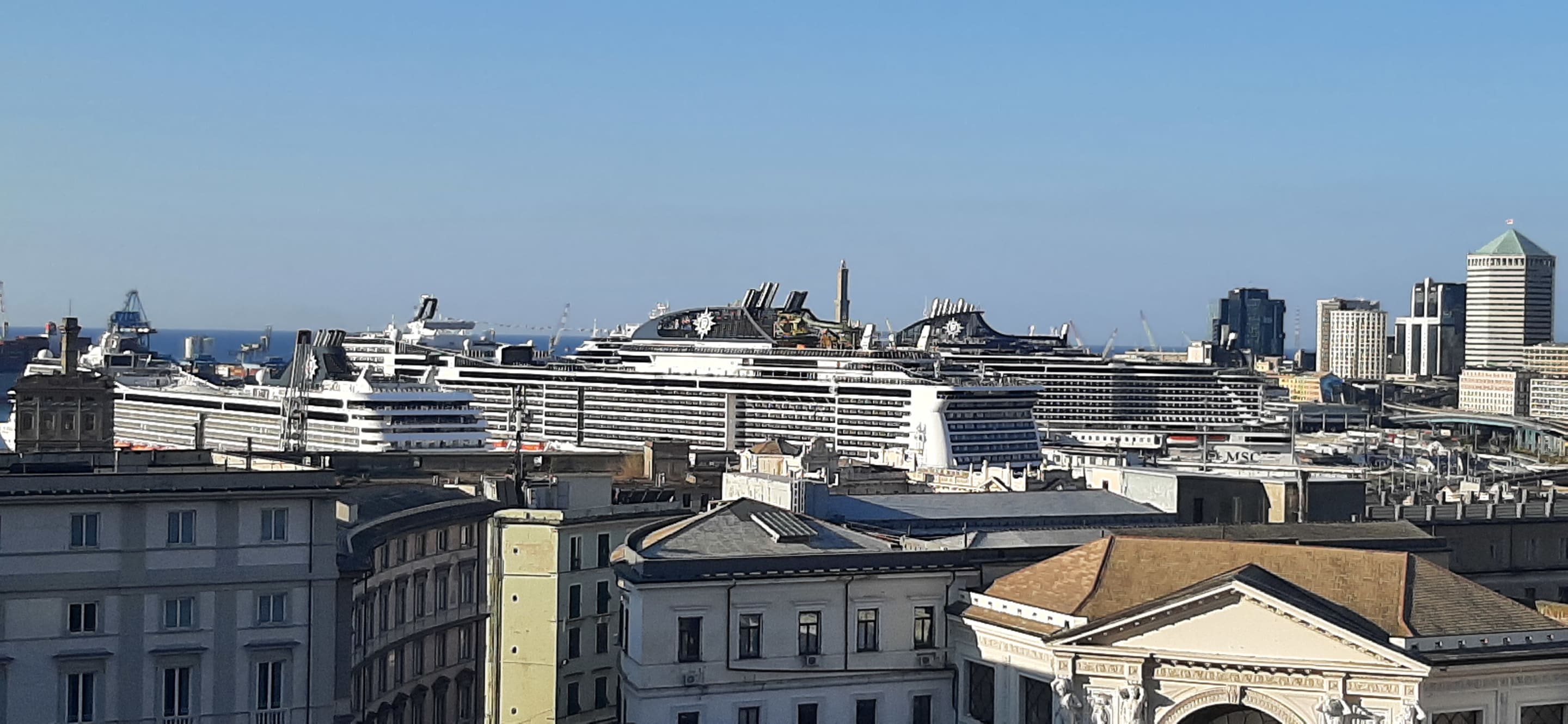 MSC Schiffe im Hafen von Terrasse aus im Blick