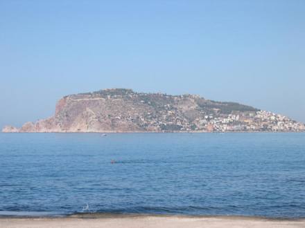 Ein Foto vom Hotelstrand, Blick nach Alanya