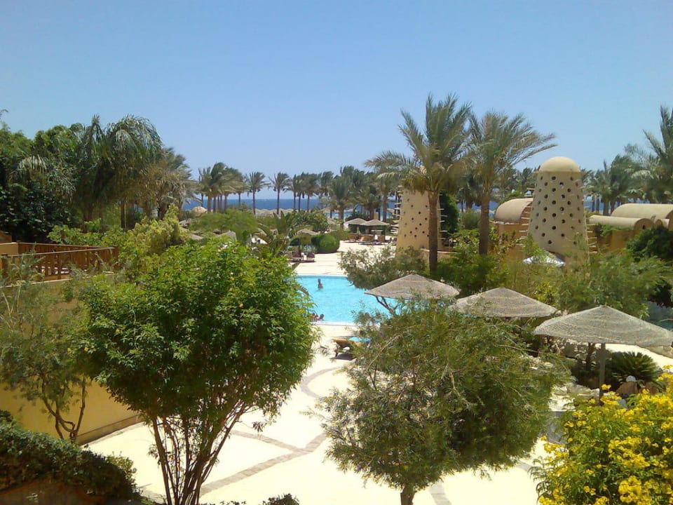 Dieses Foto habe ich oben von der großen Treppe herab zur Poolanlage gemacht. Unten in den Türmen gibt es Massagen im Angebot.