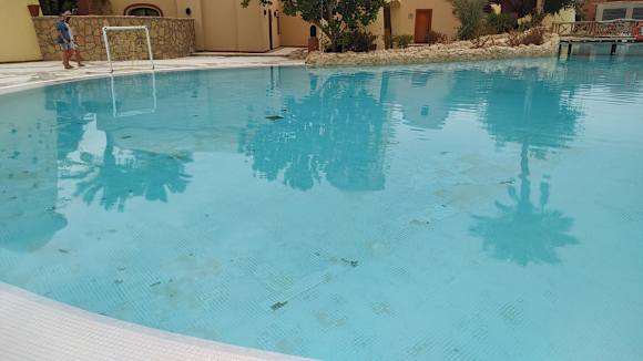 Pool mit vielen fehlenden Fliesen