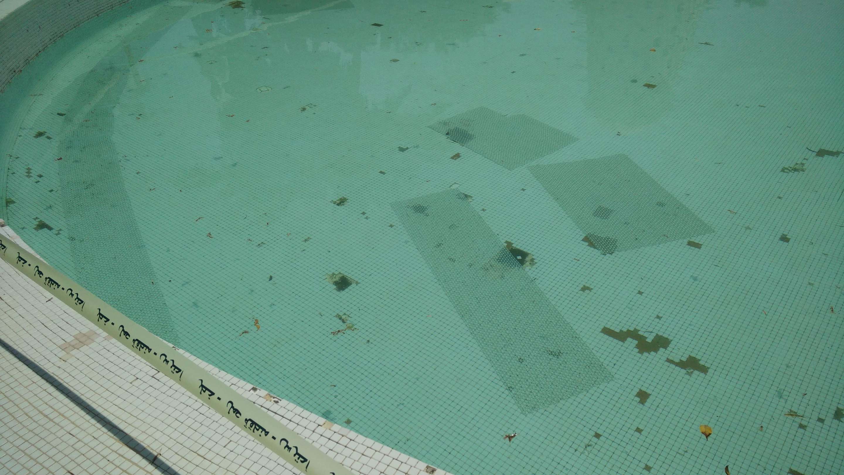Abgesperrter dreckiger Pool