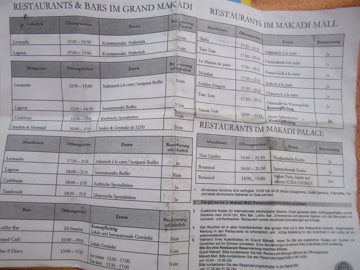 Überblick der nutzbaren Restaurants