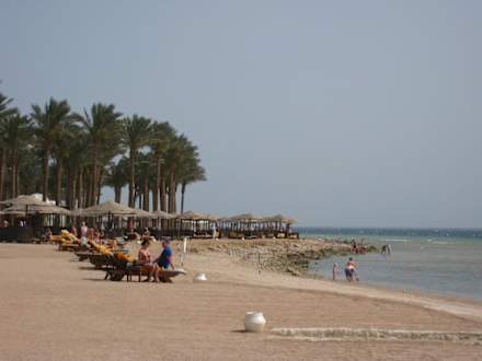 Rechts des Hotelstrandes, vor der Baustelle des Makadi Spa waren immer noch einige Liegen aufgestellt.