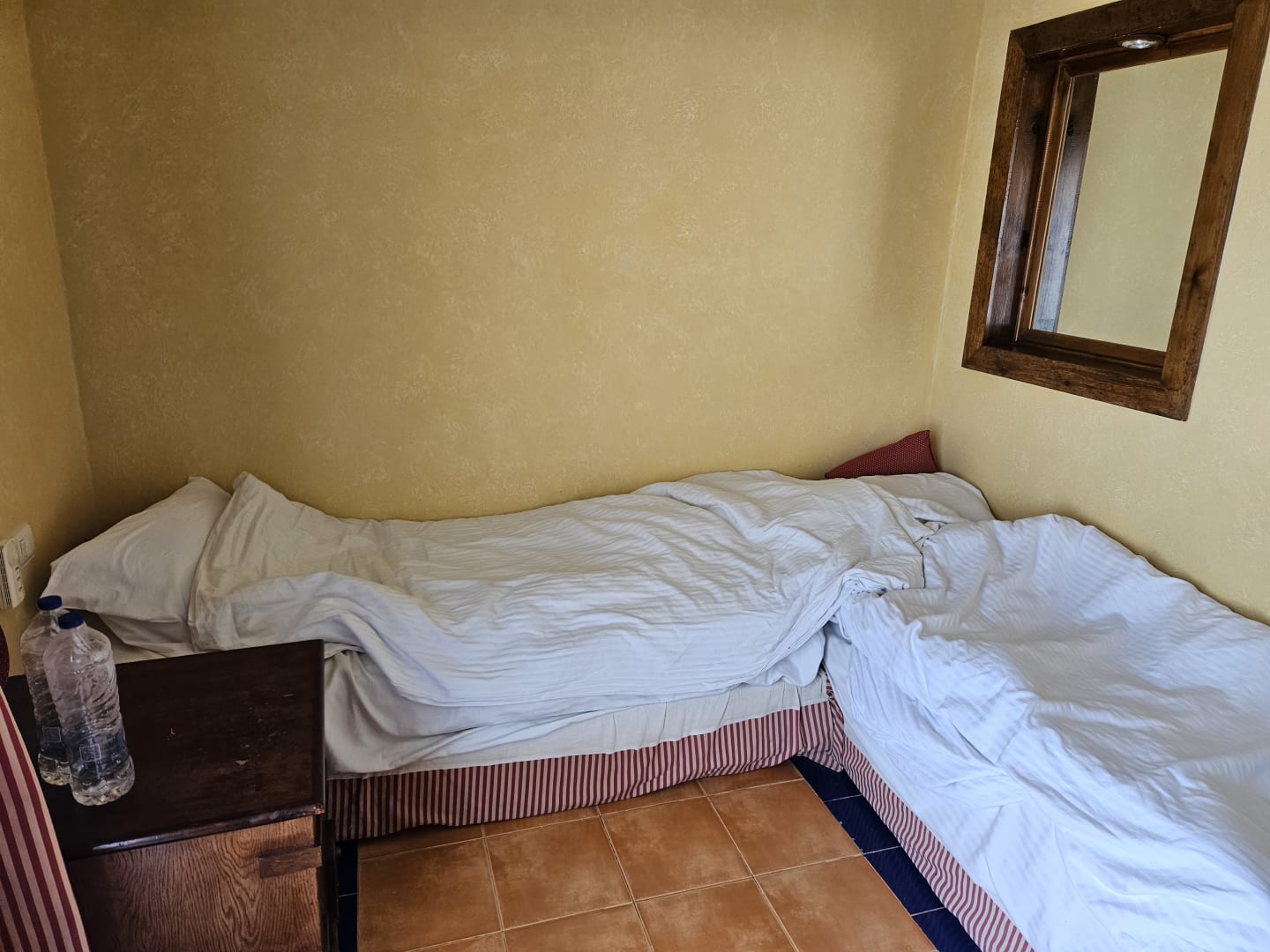 2 Einzelbetten einfach ins Wohnzimmer dazu gestellt