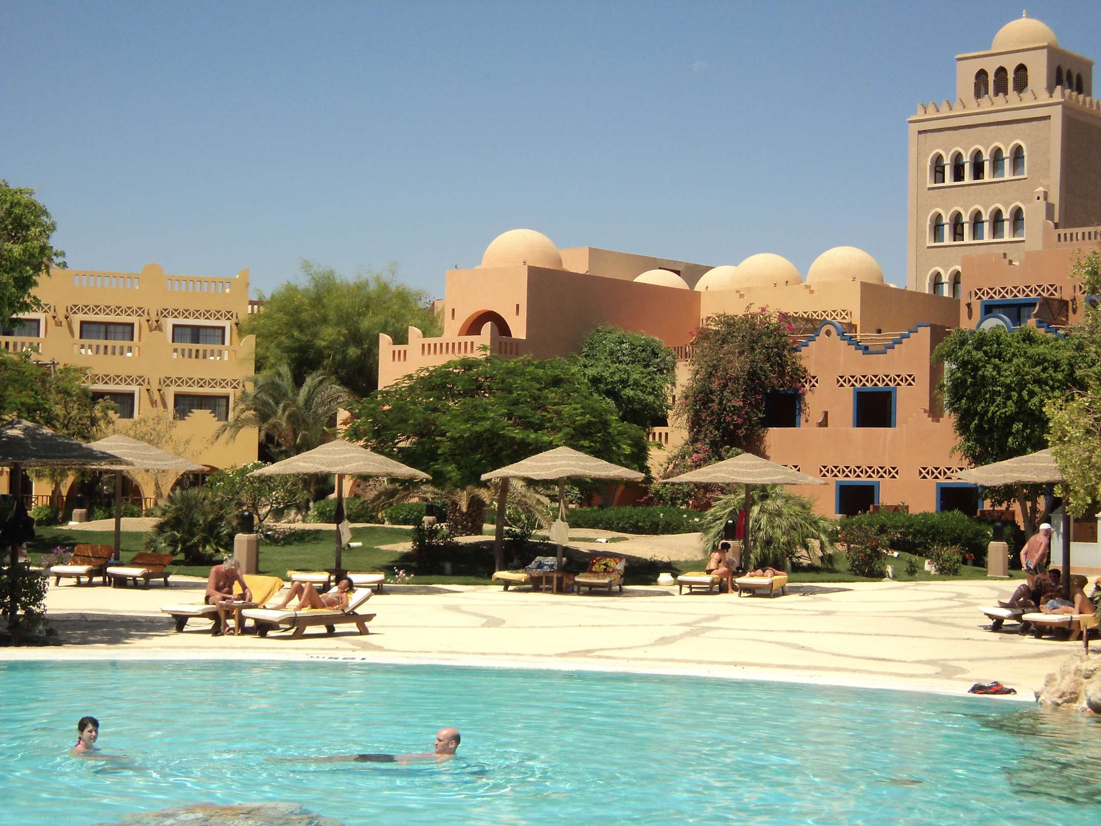 Blick vom Pool auf die Hotelanlage